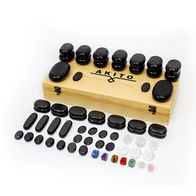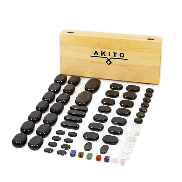 • „Akito“ masažiniai akmenys pagaminti iš bazalto – uolienos, kuri po atitinkamo gydymo naudojama karštų akmenų terapijoje. Jie pasižymi unikaliu gebėjimu išlaikyti šilumą, todėl reguliari terapija duoda norimą efektą. Karštų akmenų masažas turi platų pritaikymo spektrą, padedantį palengvinti daugelį sveikatos nusiskundimų. Visų pirma jis veikia atpalaiduojančiai įtemptus raumenis, gerina kraujotaką ir suteikia gilesnio atsipalaidavimo pojūtį. Ši terapija dažnai atliekama masažo salonuose arba SPA salonuose.