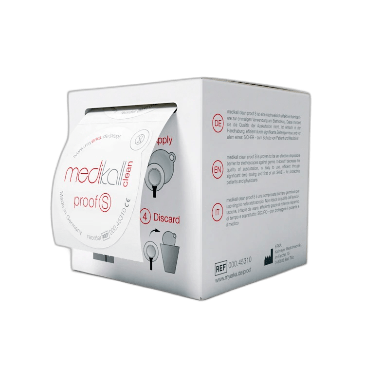 Moksliniai tyrimai parodė, kad dezinfekcijos purškiama priemone ir šluoste nepakanka norint visiškai sunaikinti kenksmingų mikrobų kiekį ant stetoskopų ir kraujospūdžio manžečių. Norint maksimaliai apsaugoti save ir savo pacientus, būtina integruoti papildomus mikrobų barjerus. „Medikall clean proof S” veikia kaip mikrobų barjeras tarp stetoskopo ir odos, veiksmingai užkertant kelią mikrobų pernešimui, nesumažinant auskultacijos kokybės.