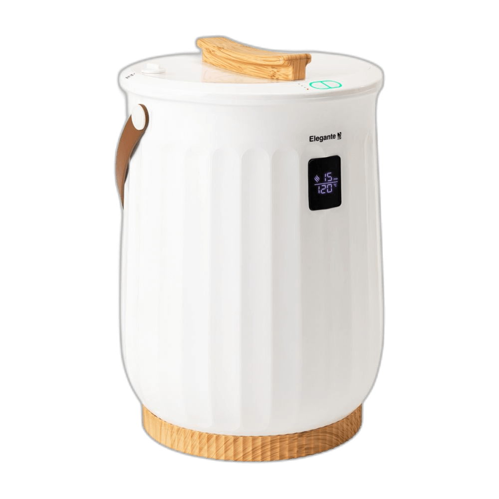 Elegantiškas rankšluosčių džiovintuvas „Elegante” leidžia šildyti du didelius rankšluosčius vienu metu. Dėl unikalaus kibiro formos prietaisas užtikrina tolygų šilumos paskirstymą visame paviršiuje kiekvieno naudojimo metu. Kad būtų patogiau naudoti, jame yra ekranas, nešiojimo dirželis ir kvapų disko laikiklis .