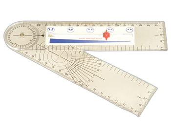 Goniometras su skausmo skalės liniuote