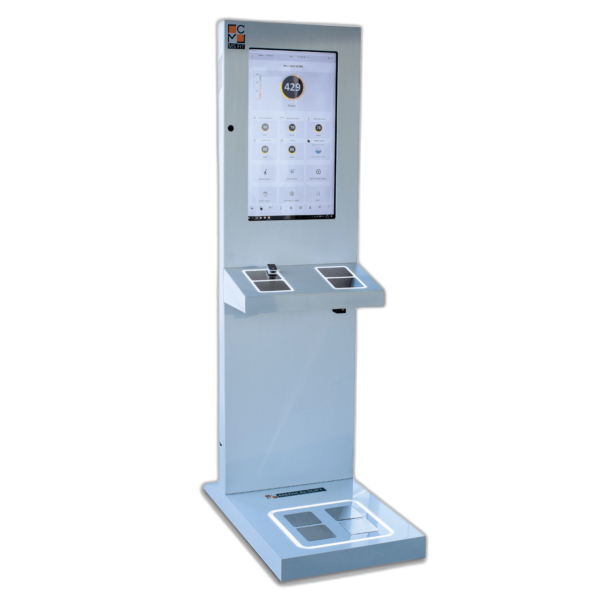 - Pėdų platforma su įmontuotais jutikliais, skirtais svorio matavimui, galvaniniam odos atsakui ir bioimpedancijai