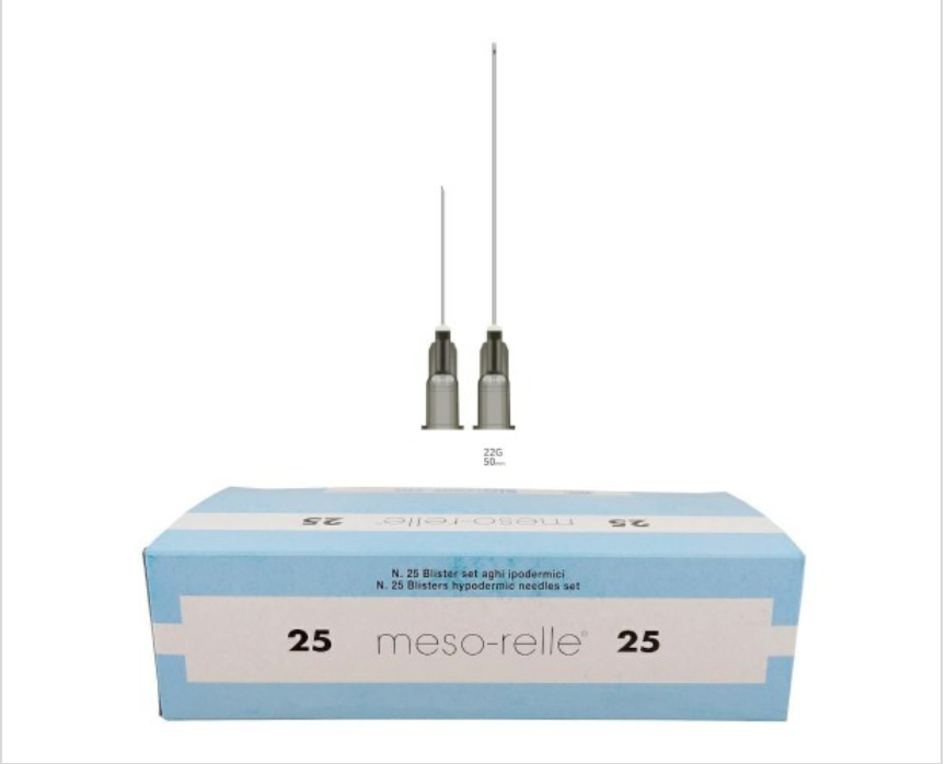 Kaniulė MESO RELLE 22G x 70 mm poodinė adata (0,7×70) + pilotė 21Gx25 mm (0,8×25), 1 rink.