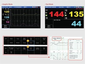 • Priešgimdyminis vaisiaus monitorius, skirtas matuoti vaisiaus širdies susitraukimų dažnį (FHR), gimdos susitraukimų aktyvumo laipsnį (UA: Uterine Activity), vaisiaus judesius (FM).