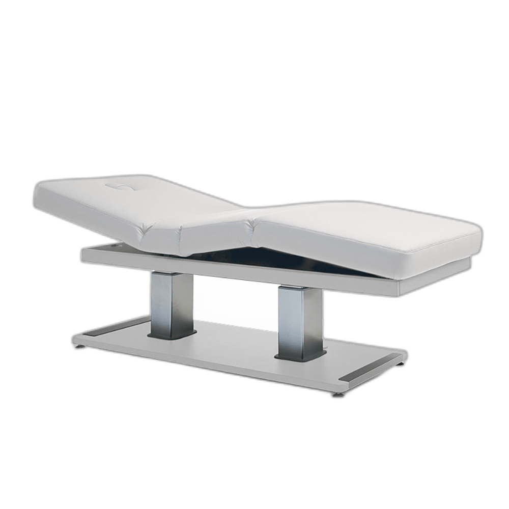 - Puristinis elegantiškas SPA stalas siūlo daugybę elektrinių reguliavimo galimybių, tokių kaip aukštis, nuolydis, nugaros ir kojų dalys.