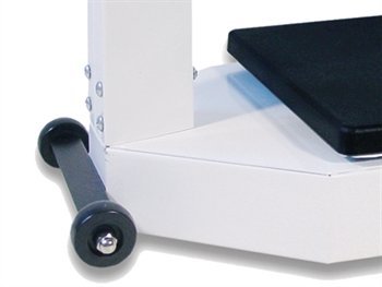 - Su teleskopine ūgio matuokle, reguliuojamomis kojelėmis, ratukais ir naudotojo vadovu