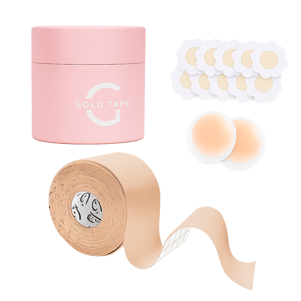• Gold Tape „Boob Tape“ – tai aukštos kokybės modeliuojanti kinezioterapinė juosta, sukurta saugiam, patogiam ir stilingam krūtinės pakėlimui be įprastos liemenėlės.