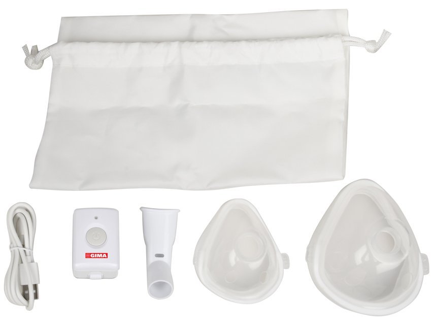 - Komplektą sudaro suaugusiųjų kaukė, vaikų kaukė, inhaliacinis kandiklis, įmontuota baterija, C tipo kabelis ir instrukcija
