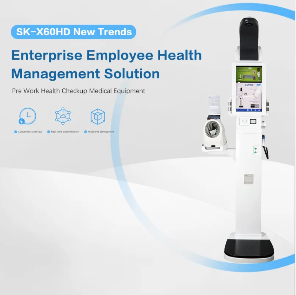 • SK-X60HD gali matuoti ūgį, svorį, KMI, kūno sudėtį, kraujospūdį, deguonies kiekį kraujyje ir kūno temperatūrą,