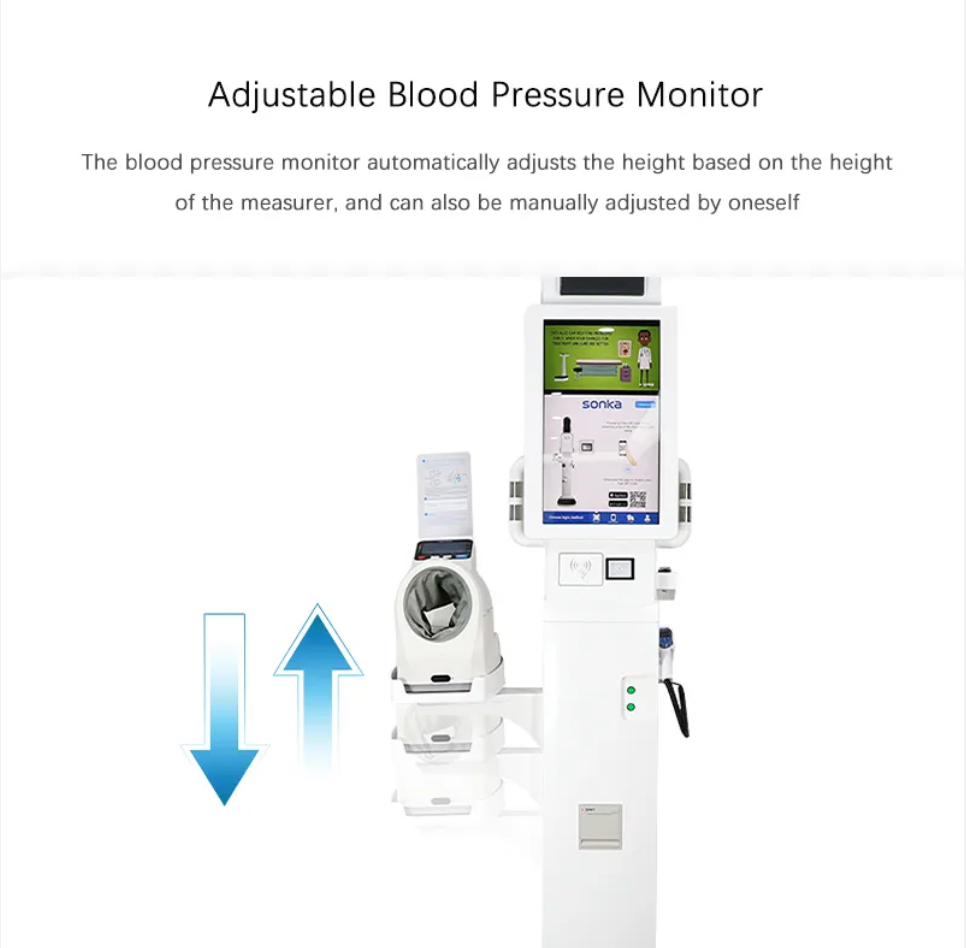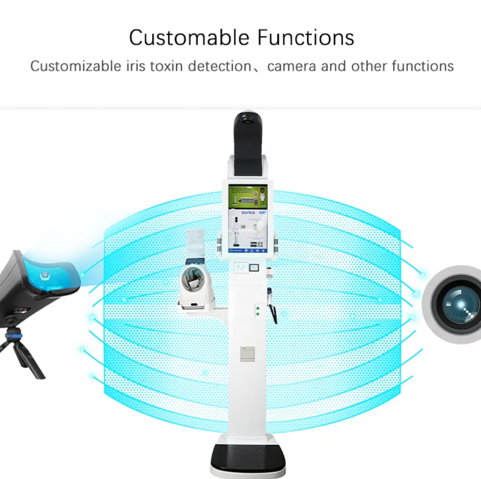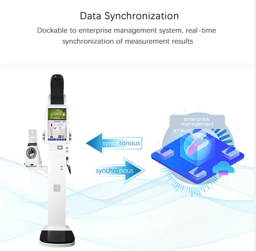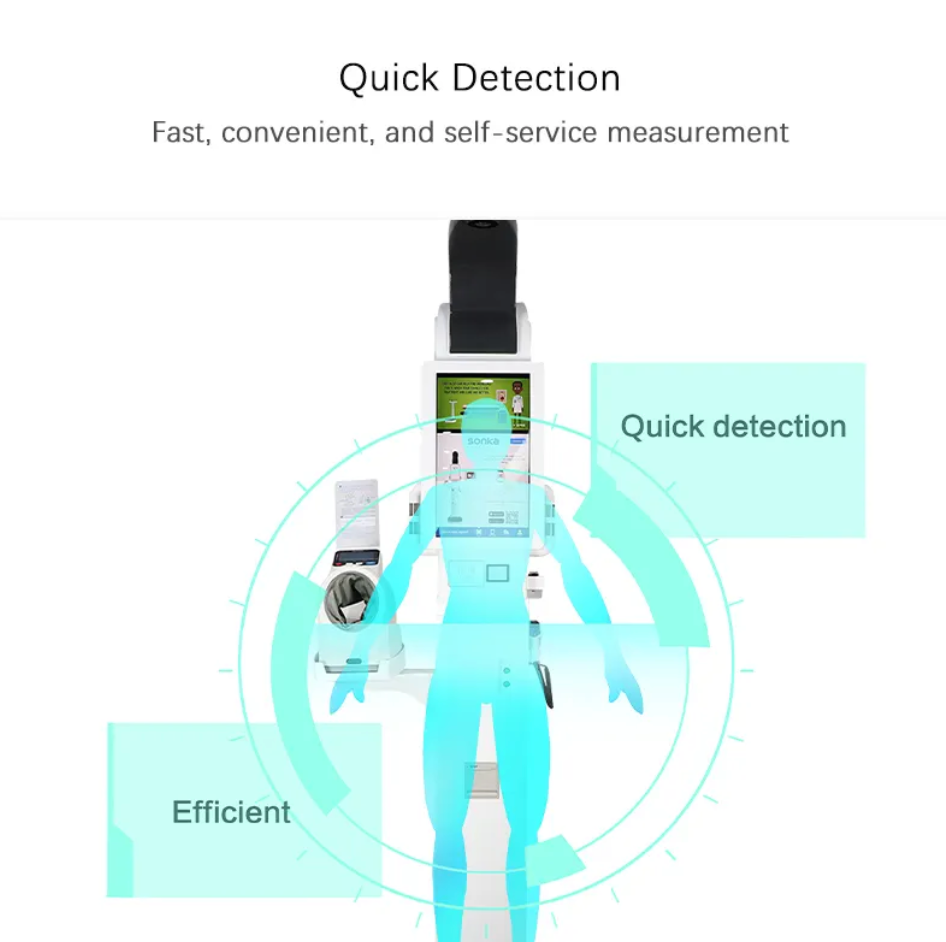 • „Android” arba „Windows” operacinės sistemos 6 kalbomis, 21,5 colio greitai reaguojantis jutiklinis ekranas, greitas ir tikslus ūgio, svorio, deguonies kiekio kraujyje, kraujospūdžio ir kūno temperatūros tyrimas.