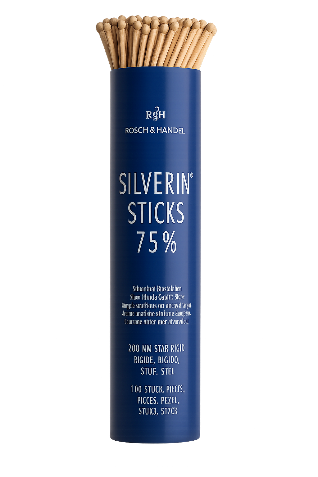 - SILVERIN® lazdelės – tai kaustinės lazdelės, pagamintos iš medžio arba plastiko, kurių galuose pritvirtintas sidabro nitrato ir kalio nitrato mišinys.