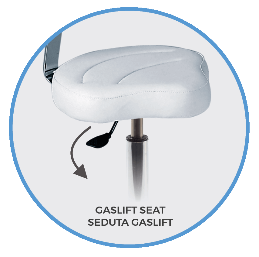 • Žema kėdė pedikiūrui su hidrauliniu reguliatoriumi
