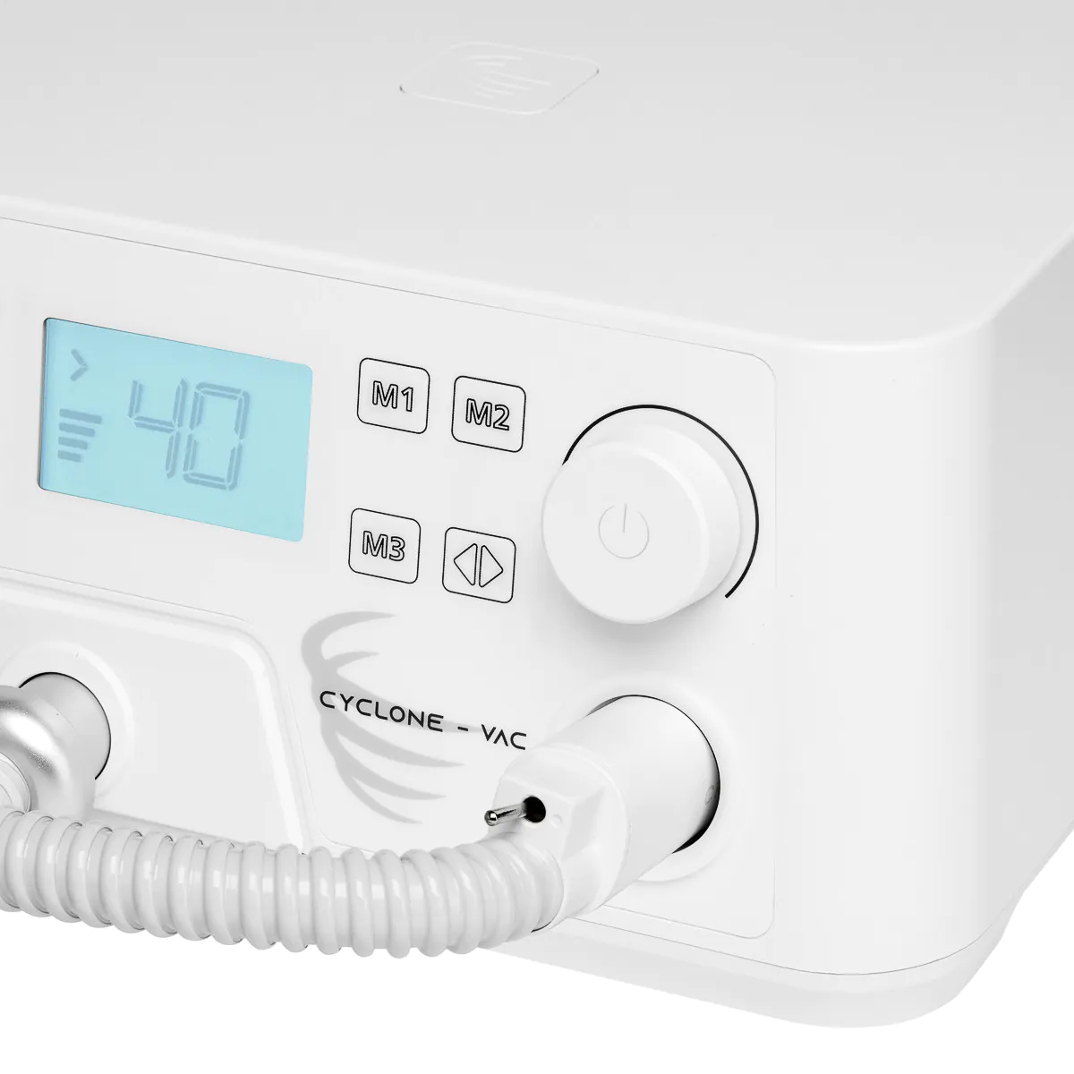 - Įjungimo/išjungimo jungiklis, esantis rankenos gale, leidžia lengvai laikinai sustabdyti sukimąsi ir siurbimą darbo metu. Tai palengvina laisvą prietaiso veikimą bet kuriuo procedūros metu.