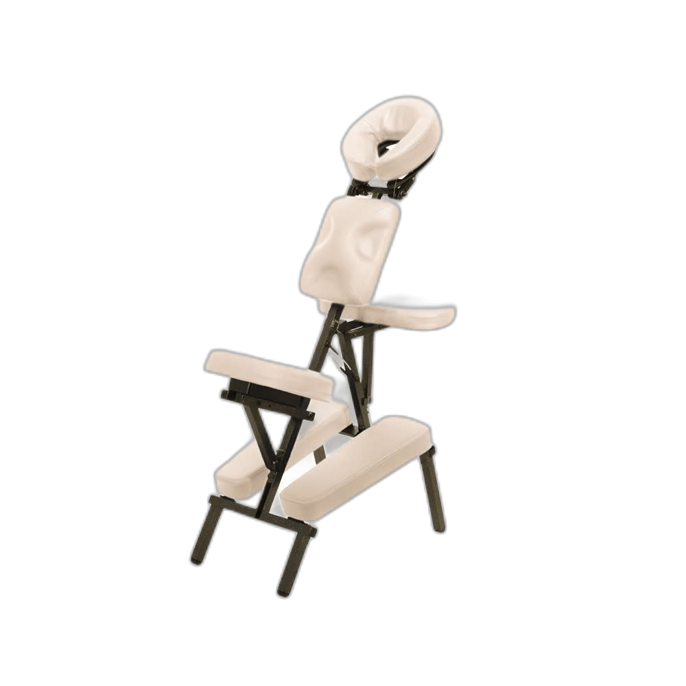 Nešiojama masažinė kėdė skirta atlikti procedūras sėdint. Lengvai reguliuojama ir sulankstoma. Tvirtas, lengvai prižiūrimas rėmas. Stabilus, nepaisant mažo svorio. Aliuminio rėmas nudažytas pilkais antracito dažais, apmušalai yra kreminės spalvos. Su praktišku krepšiu lengvam transportavimui.