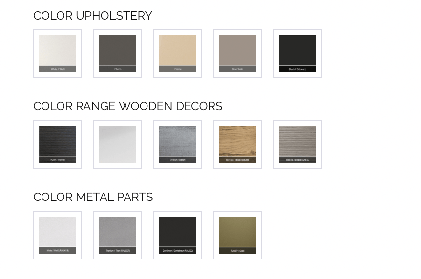 - Specialios spalvos porankių metaliniai komponentai (balta, titano arba tamsiai ruda komplektacija yra standartinė)