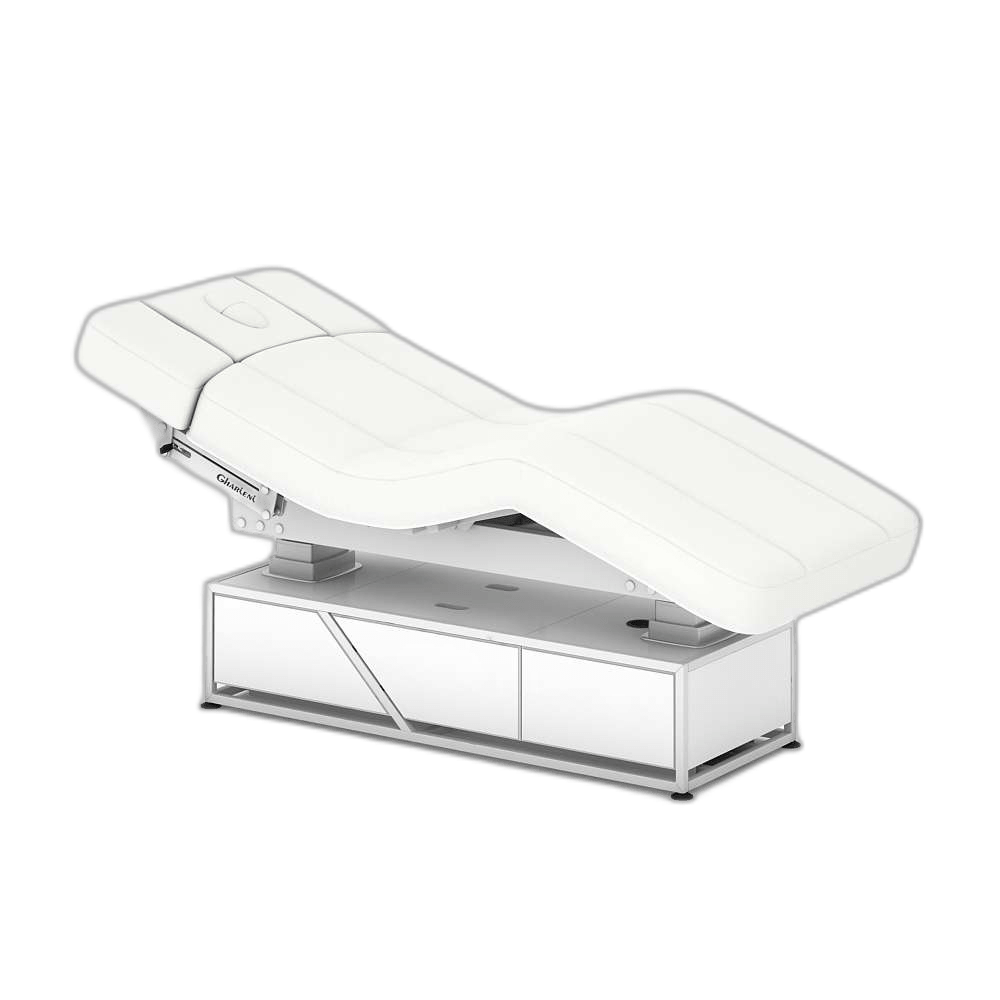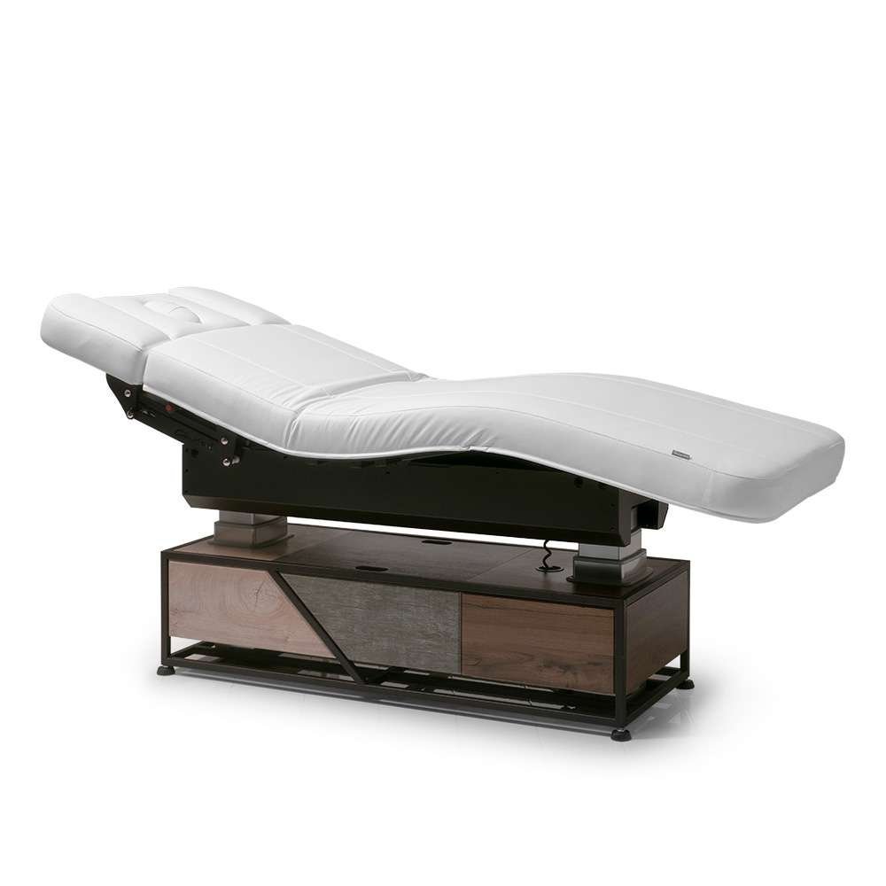 Šis unikalus retro dizaino SPA stalas su saugykla yra absoliutus dizaino akcentas. Išskirtinio metalo/medžio dizaino pagrindas suteikia daug vietos rankšluosčiams ir viskam, ko reikia jūsų darbui. Kaip ir visi „MLR Select“ serijos SPA stalai, „Vintage“ turi dvi tvirtas kėlimo kolonas, nuleidžiamus ir pasukamus porankius, reguliuojamas galvos, nugaros, kojų ir pėdų dalis bei pasirenkamą nulenkiamą pėdų dalį. Be to, stalas aprūpintas Trendelenburg funkcija ir užrakinimo funkcija.Papildomai galite įsigyti „Smart-Thermo” – programuojamą šildymo sistemą su automatiniu išjungimu bei kojinį jungiklį pagrindinėms ir atminties funkcijoms valdyti.