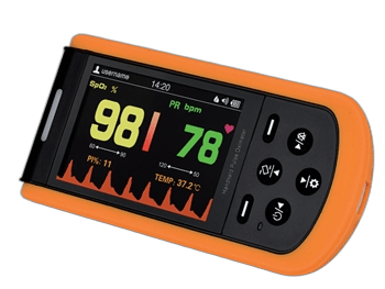 ‘- Didelis 3,5 colio automatiškai besisukantis TFT ekranas, kuriame rodomi SpO2, PI, pletizmograma, PR ir temperatūra
