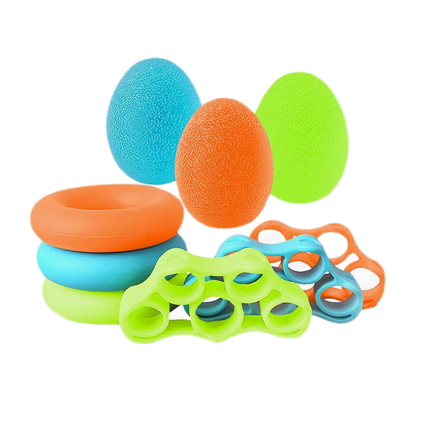 • „Squeeze eggs“ – tai silikoniniai kamuoliukai, kurių forma primena kiaušinius. Tai yra priedai, skirti rankų raumenims treniruoti. Jie ypač naudojami rankų reabilitacijai po lūžių ar traumų. Dėl savo mažo dydžio, kiaušinius galite pasiimti su savimi į darbą, mokyklą, automobilį ar ilgą kelionę.