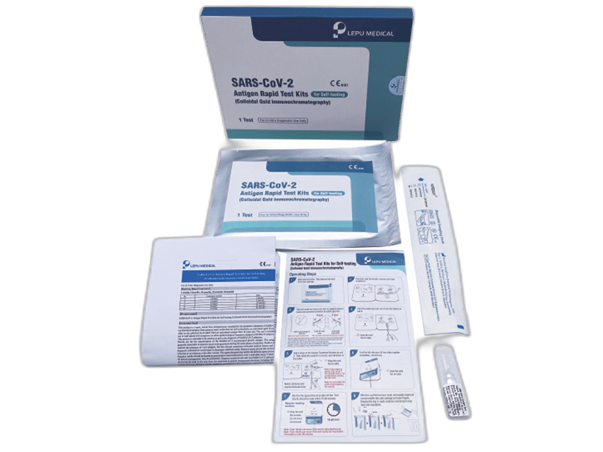 Rinkinį sudaro: 1 tyrimo kortelė, 1 nosies tamponas, 1 vienos dozės lašintuvas; operacijos kortelė ir instrukcijos.