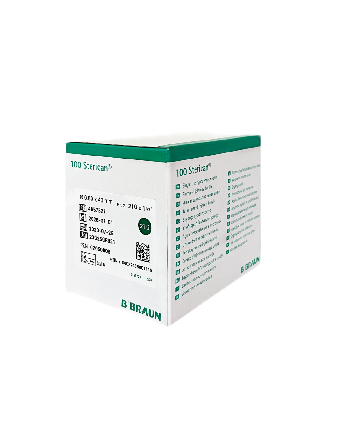 Sterican kaniulės – žalios Ø 0,80 x 40 mm 21G / 100 vnt.